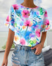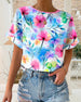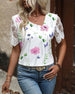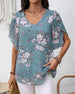 Blouse Bloemvormige Mouwen V-Hals Bedrukt