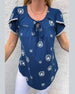 SPECIFICATIES Toptype: Bloes Stijl: Gewoontjes Materiaal: katoenblends Gelegenheid: Dagelijks Hals lijn: Ronde nek Patroon type: Afdrukken Mouw type: Bloemblaadmouw Mouw lengte: Korte mouw Pasvorm: Normaal Seizoen: Lente,Zomer Details: Veterschoenen Pakket bestaat uit: 1 x bloes MAATTABEL (cm) Maat Borst Lengte S 97 65 M 101 66.5 L 105...