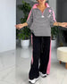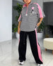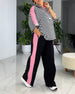 Pak Revers Knop Kleurblok Gestreepte Rechte Broek