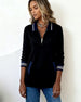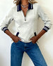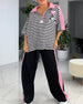 SPECIFICATIES Stijl: Gewoontjes Toptype: Topjes Categorie: Sets Materiaal: katoenblends Patroon type: Gestreept,Kleurblok Hals lijn: Revers Mouw type: Normale mouw Mouw lengte: Lange mouw Broektype: Breed been Broek lengte: Lang type taille: Middelhoge taille Pasvorm: Normaal Seizoen: Lente,Zomer Details: Zak,Toetsen Pakket bestaat uit: 1 x T...