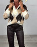 Preppy-Stijl Pullover Met Ruitpatroon En Overhemdkraag