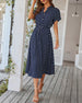 SPECIFICATIES Stijl: Gewoontjes Materiaal: katoenblends Type jurk: A-lijn Jurk lengte: Midi Hals lijn: V-hals_V Patroon type: Stip Mouw type: Normale mouw Mouw lengte: Korte mouw Details: Veterschoenen, Toetsen Pasvorm: Normaal Seizoen: Lente, Zomer Gelegenheid: Dagelijks Pakket bestaat uit: 1 x Jurk MAATTABEL (cm) Maat Buste Lengte S...