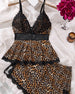 SPECIFICATIES Stijl: Sexy Type jurk: Cami Categorie: Sets Materiaal: katoenblends Patroon type: Luipaard Hals lijn: Spaghettibandjes Mouw lengte: Mouwloos Pasvorm: Normaal Seizoen: Lente,Zomer,Val,Winter Details: Lapwerk,Veter Pakket bestaat uit: 1 x jas, 1 x Jurk MAATTABEL (cm) Maat Borst Lengte S 92 100 M 96 101.5 L 100 103 XL...