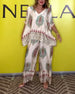 Set Temperamentvolle V-Hals Cashewbloem Wijde Pijp