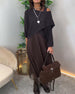 SPECIFICATIES Stijl: Gewoontjes Toptype: Gebreide Tops Type jurk: Verschuivings jurk Categorie: Truien Materiaal: Acryl,Polyester Patroon type: Effen kleur Mouw lengte: Lange mouw Jurk lengte: Maxi Pasvorm: Normaal Seizoen: Val,Winter Gelegenheid: Dagelijks Pakket bestaat uit: 1 x Trui, 1 x Jurk MAATTABEL (cm) Maat Borst S 97 M 101...