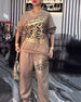 SPECIFICATIES Stijl: Gewoontjes Toptype: t-shirt Categorie: Sets Materiaal: katoenblends Patroon type: Brief,Afdrukken Hals lijn: Ronde nek Mouw type: Normale mouw Mouw lengte: Korte mouw Broektype: Potlood Broek Broek lengte: 3/4 lang type taille: Middelhoge taille Pasvorm: Normaal Seizoen: Lente,Zomer Details: Zak,Trekkoord Gelegenheid: Dage...
