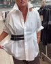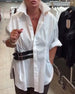 SPECIFICATIES Toptype: Shirt Stijl: Chique Materiaal: katoenblends Gelegenheid: Dagelijks,Werk Hals lijn: Kraag Patroon type: Effen kleur Mouw type: verlaagde schouder Mouw lengte: Lange mouw Pasvorm: Normaal Seizoen: Val,Winter Details: Gesp,Toetsen Pakket bestaat uit: 1 x overhemd MAATTABEL (cm) Maat Borst Lengte S 97 68 M 101 69.5 L...