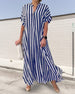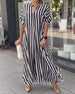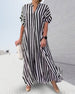 SPECIFICATIES Stijl: Gewoontjes Materiaal: katoenblends Type jurk: Shirt Jurk lengte: Maxi Hals lijn: V-hals_V Patroon type: Gestreept Mouw type: verlaagde schouder Mouw lengte: Korte mouw Details: Spleet Pasvorm: Loszittend Seizoen: Lente, Zomer, Val Gelegenheid: Dagelijks Pakket bestaat uit: 1 x Jurk MAATTABEL (cm) Maat Borst ...