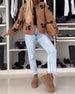 Stijlvolle luipaardprint jurk met patchwork rits en zak