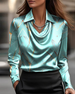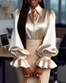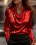 Blouse Elegant Satijn Met Uitlopende Mouwen