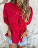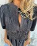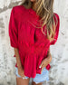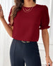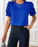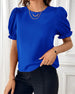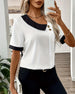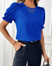 Blouse Effen Kleur Taille Strik Korte Mouw