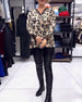 SPECIFICATIES Toptype: Bloes Stijl: Gewoontjes Materiaal: katoenblends Gelegenheid: Dagelijks Hals lijn: V-hals_V Patroon type: Luipaard Mouw type: Normale mouw Mouw lengte: Lange mouw Pasvorm: Normaal Seizoen: Lente,Val,Winter Details: Lapwerk,Veter Pakket bestaat uit: 1 x bloes MAATTABEL (cm) Maat Borst Lengte S 97 68 M 101 69.5 L 10...