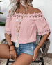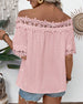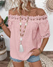 SPECIFICATIES Toptype: Bloes Stijl: Gewoontjes Materiaal: katoenblends Gelegenheid: Dagelijks Hals lijn: Off-shoulder Patroon type: Afdrukken Mouw type: Normale mouw Mouw lengte: Korte mouw Pasvorm: Normaal Seizoen: Lente,Zomer Details: Lapwerk,Veter Pakket bestaat uit: 1 x bloes MAATTABEL (cm) Maat Borst Lengte S 97 65 M 101 66.5 L 10...