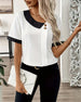 SPECIFICATIES Toptype: Bloes Stijl: Gewoontjes Materiaal: katoenblends Gelegenheid: Dagelijks Hals lijn: V-hals_V Patroon type: Effen kleur Mouw type: Normale mouw Mouw lengte: Korte mouw Pasvorm: Normaal Seizoen: Lente,Zomer Details: Toetsen Pakket bestaat uit: 1 x bloes MAATTABEL (cm) Maat Borst Lengte S 96 63 M 101 64 L 106 65 ...