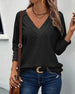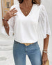 Blouse Eenvoudig Casual Effen V-Hals Korte Mouwen