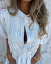 SPECIFICATIES Toptype: Bloes Stijl: Gewoontjes Materiaal: katoenblends Gelegenheid: Dagelijks Hals lijn: Ronde nek Patroon type: Effen kleur Mouw type: Lantaarn mouw Mouw lengte: Korte mouw Pasvorm: Normaal Seizoen: Lente,Zomer Pakket bestaat uit: 1 x bloes MAATTABEL (cm) Maat Borst Lengte Mouwen Schouder S 94 60 27 35 M 99 61 27.5 36...