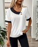 SPECIFICATIES Toptype: t-shirt Stijl: Gewoontjes Materiaal: katoenblends Gelegenheid: Dagelijks Hals lijn: Schuin Kraag Patroon type: Kleurblok Mouw type: Normale mouw Mouw lengte: Korte mouw Pasvorm: Normaal Seizoen: Lente,Zomer Details: Toetsen Pakket bestaat uit: 1 x T-shirt MAATTABEL (cm) Maat Borst Lengte S 97 65 M 101 66.5 L 105 ...