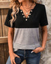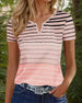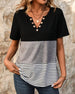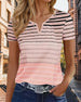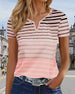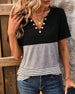SPECIFICATIES Toptype: t-shirt Stijl: Gewoontjes Materiaal: katoenblends Gelegenheid: Dagelijks Hals lijn: V-hals_V Patroon type: Gestreept,Kleurblok Mouw type: Normale mouw Mouw lengte: Korte mouw Pasvorm: Normaal Seizoen: Lente,Zomer Details: Toetsen Pakket bestaat uit: 1 x T-shirt MAATTABEL (cm) Maat Borst Lengte S 97 65 M 101 66.5 ...