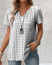 SPECIFICATIES Toptype: t-shirt Stijl: Gewoontjes Materiaal: katoenblends Gelegenheid: Dagelijks Hals lijn: V-hals_V Patroon type: Plaid Mouw type: Normale mouw Mouw lengte: Korte mouw Pasvorm: Normaal Seizoen: Lente,Zomer Details: Zak Pakket bestaat uit: 1 x T-shirt MAATTABEL (cm) Maat Borst Lengte S 97 68 M 101 69.5 L 105 71 XL 111 ...