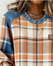 Sweatshirt Van Denim Met Patchworkdetails En Ruitjespatroon