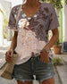 T-Shirt Bloemenprint V-Hals Korte Mouwen