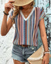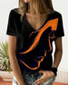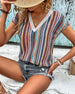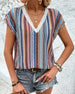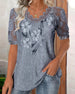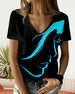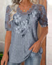 T-Shirt Kleurrijk Bedrukt Kant V-Hals