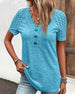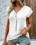 SPECIFICATIES Toptype: t-shirt Stijl: Elegant Materiaal: Polyester Gelegenheid: Dagelijks Hals lijn: V-hals_V Patroon type: Effen kleur Mouw type: Normale mouw Mouw lengte: Korte mouw Pasvorm: Normaal Seizoen: Lente, Zomer, Val Details: Lapwerk, Veter Pakket bestaat uit: 1 x T-shirt MAATTABEL (cm) Maat Borst Lengte Mouwen S 94 66 21 ...