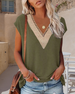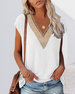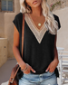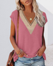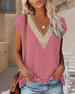 T-Shirt Met Elegante V-Hals En Kant Trim