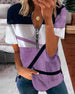 T-Shirt Met Korte Mouwen Effen Kleur Patchwork