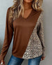 T-Shirt Met Persoonlijke Stijl, V-Kraag, Luipaardpatroon En Patchworkontwerp