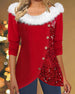 T-shirt met bontkraag en pailletten