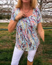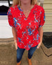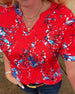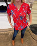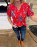 T-Shirt V-Hals Bloemenprint Korte Mouwen