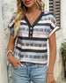 SPECIFICATIES Toptype: t-shirt Stijl: Gewoontjes Materiaal: katoenblends Gelegenheid: Dagelijks Hals lijn: V-hals_V Patroon type: Gestreept Mouw type: Normale mouw Mouw lengte: Korte mouw Pasvorm: Normaal Seizoen: Lente,Zomer Details: Toetsen Pakket bestaat uit: 1 x T-shirt MAATTABEL (cm) Maat Borst Lengte S 97 65 M 101 66.5 L 105 68 ...