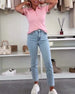 T-Shirt Ronde Hals Effen Kleur Vleermuismouwen