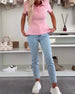 T-shirt V-hals Effen Kleur Elegante Korte Mouwen