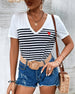 T-Shirt V-Hals Kleurrijk Gestreept Veelzijdig