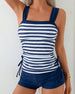 SPECIFICATIES Stijl: Vakantie Materiaal: 15% Spandex,85% Polyester Gelegenheid: Vakantie Patroon type: Gestreept Mouw lengte: Mouwloos Top type: Tankini Bodem type: Korte broek Pasvorm: mager Details: Veterschoenen,Trekkoord Pakket bestaat uit: 1 x tankini MAATTABEL (cm) Maat Borst Middel Huep Lagere buste S 88 73 96 73 M 92 77 100 77 ...