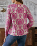 SPECIFICATIES Toptype: Bloes Stijl: Gewoontjes Materiaal: katoenblends Gelegenheid: Dagelijks Hals lijn: Ronde nek Patroon type: Afdrukken Mouw type: Normale mouw Mouw lengte: Negen punten mouw Pasvorm: Normaal Seizoen: Lente, Zomer Details: Uithollen Pakket bestaat uit: 1 x bloes MAATTABEL (cm) Maat Borst Lengte S 95 65 M 100 66.5 L 1...