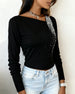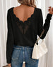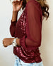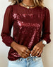 Top Met Pailletten Inzet Ronde Hals Lange Mouw