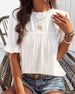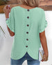 SPECIFICATIES Toptype: Topjes Stijl: Gewoontjes, Elegant Materiaal: katoenblends Gelegenheid: Dagelijks Hals lijn: V-hals_V Patroon type: Effen kleur Mouw type: Normale mouw Mouw lengte: Korte mouw Pasvorm: Normaal Seizoen: Lente, Zomer Details: Toetsen Pakket bestaat uit: 1 x Top MAATTABEL (cm) Maat Borst Lengte S 95 68 M 100 69.5 L 1...