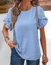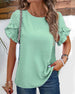 SPECIFICATIES Toptype: Topjes Stijl: Gewoontjes Materiaal:100% Polyester Gelegenheid: Dagelijks, Vakantie Hals lijn: Ronde nek Patroon type: Afdrukken Mouw type: Ruche Mouw Mouw lengte: Korte mouw Pasvorm: Normaal Seizoen: Lente, Zomer Details: Toetsen Pakket bestaat uit: 1 x Top MAATTABEL (cm) Maat Borst Lengte Mouwen Schouder S 9...