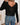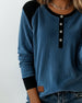 Top Met Knop Detail, Geribbelde Textuur En Kleurblokontwerp