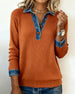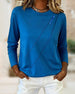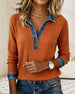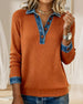 Top Met Knus Textuur, Losse Passform, Kragen Design, Gebreid Stof En Zakdetail