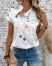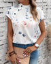 Top met korte mouwen en opstaande kraag met bloemenprint