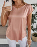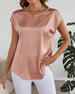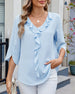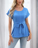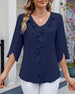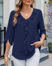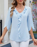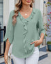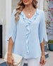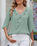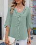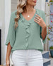 Blouse Halve Mouwen Ruches Effen Kleur Casual