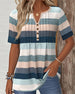 SPECIFICATIES Toptype: Bloes Stijl: Gewoontjes Materiaal: katoenblends Gelegenheid: Dagelijks Hals lijn: V-hals_V Patroon type: Gestreept,Kleurblok Mouw type: Normale mouw Mouw lengte: Korte mouw Pasvorm: Normaal Seizoen: Lente,Zomer Details: Toetsen,gerimpeld Pakket bestaat uit: 1 x bloes MAATTABEL (cm) Maat Borst Lengte S 97 65 M 101 6...