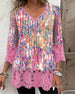 Blouse Korte Mouwen Vetersluiting Bedrukt