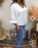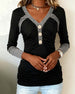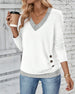 Top met V-hals, 3/4 mouwen en knoopjes op de rug