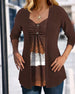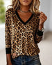 Top Met V-Kraag Ontwerp, Luipaardprint, Patchworkdetail En Lange Mouwen