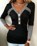 Top Met V-Hals En Lange Mouwen In Contrastkleuren